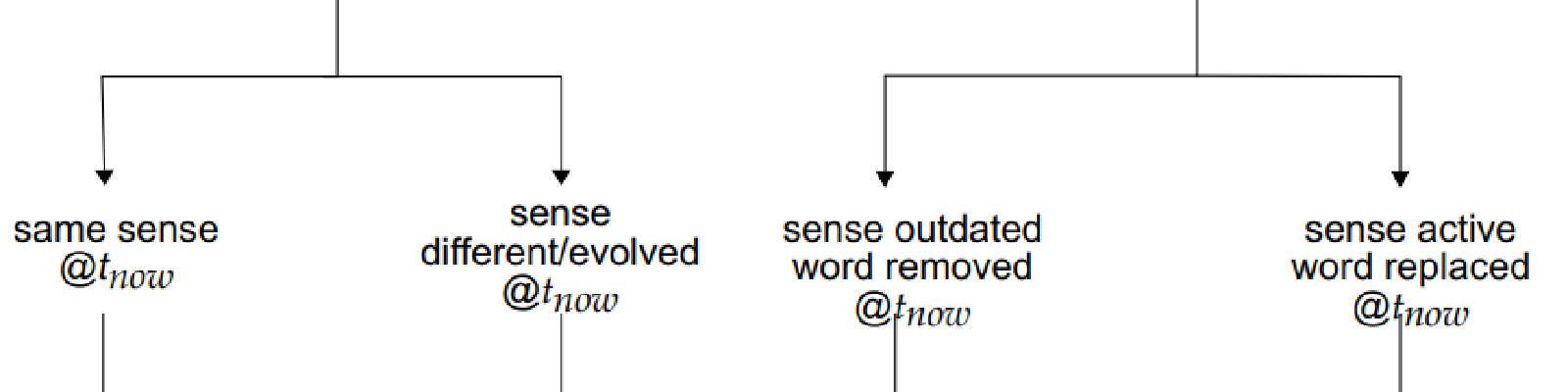 This testset consists of 23 terms which have experienced word sense change during the past centuries. The main changes for each term were found using Wikipedia, dictionary.com and the Oxford English Dictionary. We consider major changes in usage as well as changes to sense. In cases where multiple (fine-grained) senses were available, we opted to accept the widest sense. E.g. for the term rock we consider a music sense without any distinction between different types of rock music, because our dataset is unlikely to have fine-grained sense differentiations. If a clear time point cannot be pinpointed, we choose the earliest possible. For comparison purposes we also chose a set of 11 terms that have experienced minimal change during the investigated period, i.e., stable terms.
